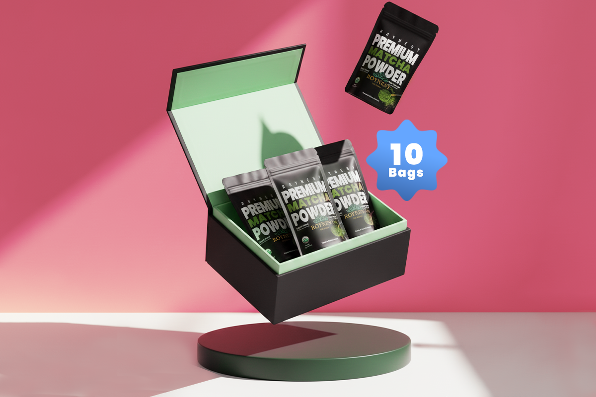 10 pouches of 50g of green tea matcha, keeps your store full and comfy. Whether you're looking for a top-up or curious about testing us out, look no further than this care package.